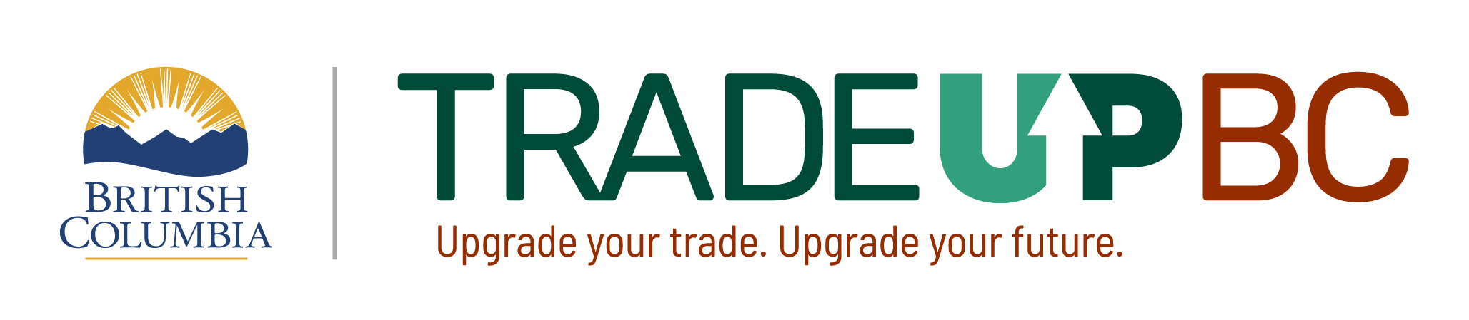 The TradeUpBC Wordmark (top) may be used separately from the BC Mark, provided the BC Mark is visible in another location. For example: back cover; inside front cover; or at the bottom of a page. Only in these cases can the scale of BC Mark be altered in relation to the TradeUpBC Wordmark.